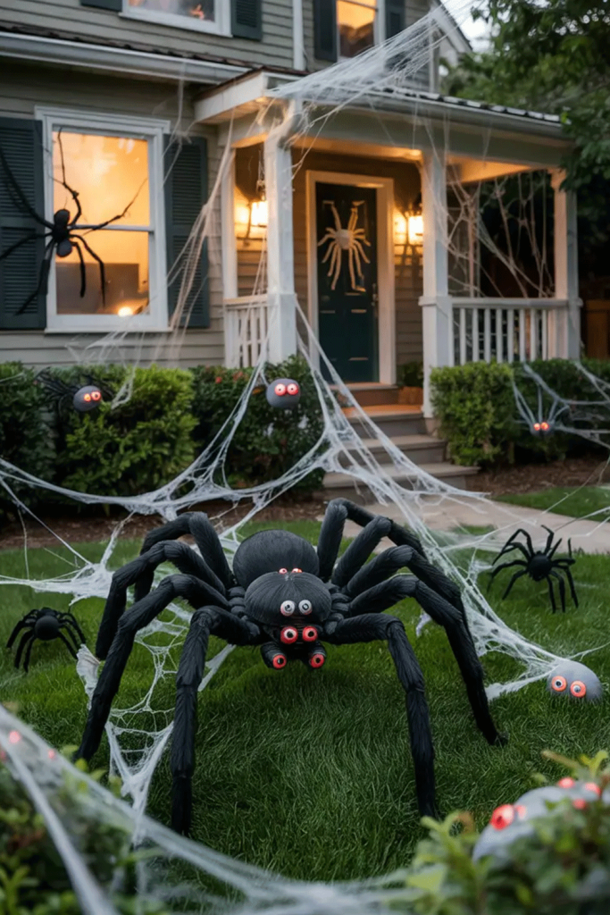 10. Creepy Halloween Yard Decorations Featuring Spiders and Their Webs